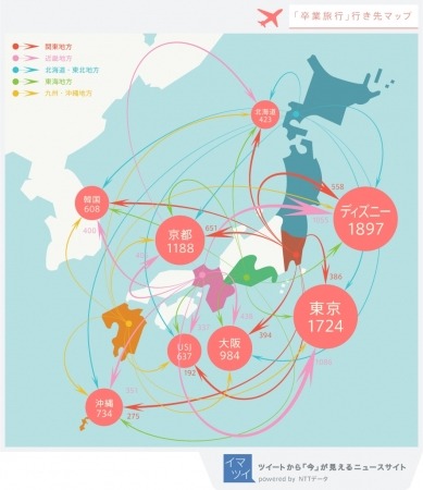 ■関東から京都へ、韓国は西日本から。各地の学生のツイートから見えてきた、全国の卒業旅行の行き先マップ。キーワードは地方の「地元愛」?