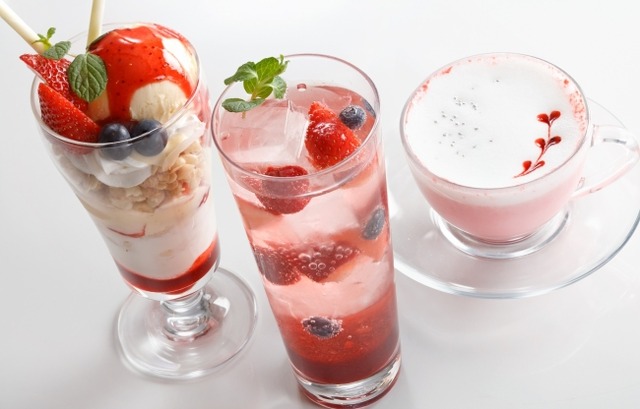 やさしい甘さが人気の苺ミルクをはじめ、苺とヨーグルト、グラノーラの組み合わせが絶妙な苺パフェや、すっきりとした味わいのベリースカッシュもご用意しております。
