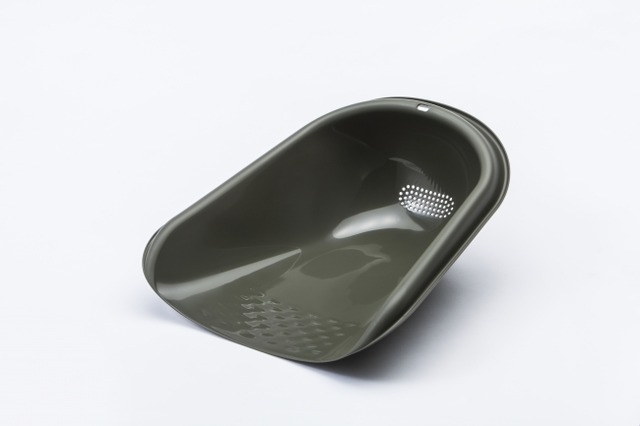 「Frutte(フルーテ)」は、落ち葉拾いや家庭菜園の収穫時に、水や砂をふるい落として分別できる家庭用の“てみ”です。ボウルのような形状にあなを開けることで、“てみ”に分別機能を付加しました。持ち手部分は、任意の位置でにぎりやすいように、柔らかなカーブで手にフィット。飽きのこないカーキ色を採用し、一般的な“てみ”のイメージとは違い、ガーデニングや家庭菜園を楽しむ家庭に馴染むデザインです。