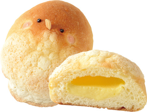 ふんわりやわらかな生地に口どけなめらかなカスタードクリームを包み、マカロン生地をトッピングしました。