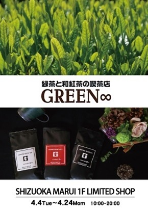 静岡マルイ(株式会社丸井、本社:東京都中野区、取締役社長:佐々木一)の1F LIMITED SHOPに、4月4日(火)~4月24日(月)の期間限定で、地元静岡・両河内のお茶を楽しめる緑茶と和紅茶の喫茶店「グリーンエイト」が登場します。