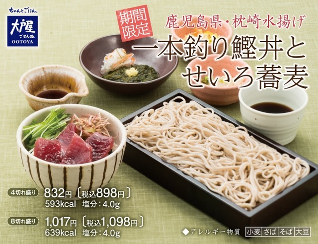 『鹿児島県・枕崎水揚げ 一本釣り鰹丼とせいろ蕎麦』