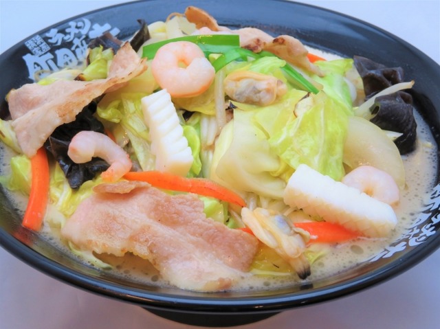 100%国産野菜をたっぷりと330g使用し、家系の濃厚スープにちゃんぽんの海鮮のコクと旨みを加え、ボリューム満点な家系ちゃんぽんが誕生しました。