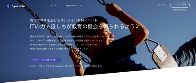 イベントページの1シェアあたり、10円をSyncableから寄付します。
