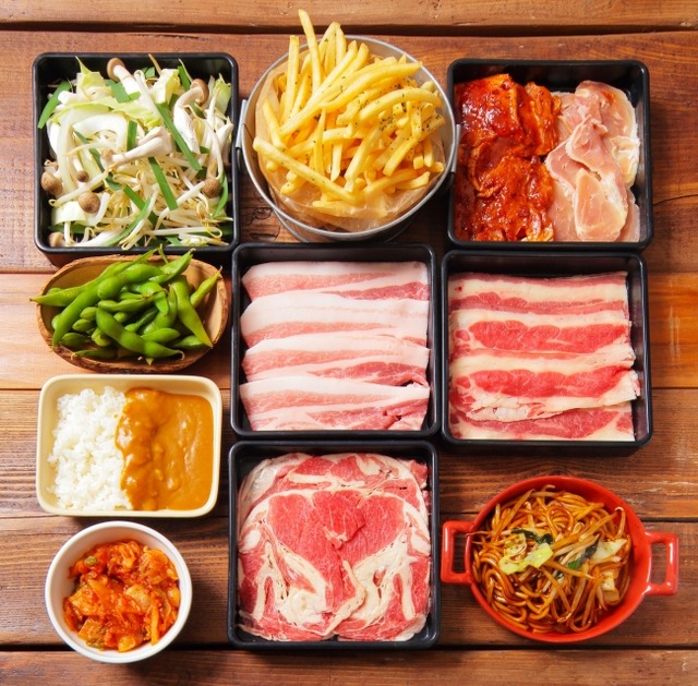 その他、焼き野菜 、 焼きそば 、 エダマメ 、 キムチ 、 フライドポテト 、 カレーライス 、シェイブアイス(ハワイのかき氷)が全て食べ放題です。