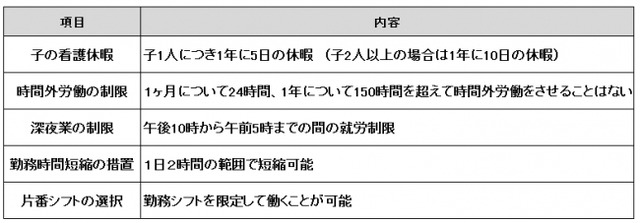 【適用期間が改正された育児支援施策一覧】