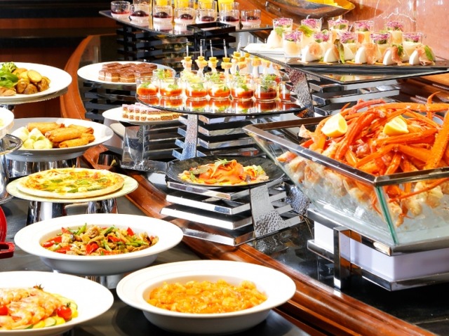 そのほかのブッフェメニューには、「ボイルトゲズワイ蟹」や「ツブとマッシュルームのアヒージョ」、「ローストポーク ガーリックソース」「鰈とトマトのロースト ジェノベーゼソース」「サーモンとアボカドのサラダ散らし寿司」「海老と玉蜀黍のかき揚げ 海老塩添え」など、創作料理を含む和洋中全40品をご用意。ちいさなお子様には「手作り綿あめ」や「ミニフレンチドック」、ケーキにアイスなどのキッズメニューも多数ご用意しております。