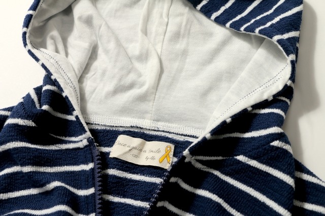 この季節の厳しい紫外線から、 お子さまの肌を守ります。フード裏のボーダー柄がアクセントになっています。