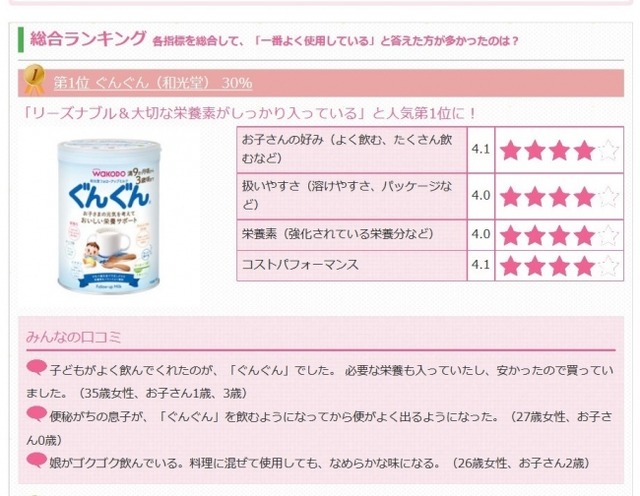 ■和光堂「ぐんぐん」が第1位に
