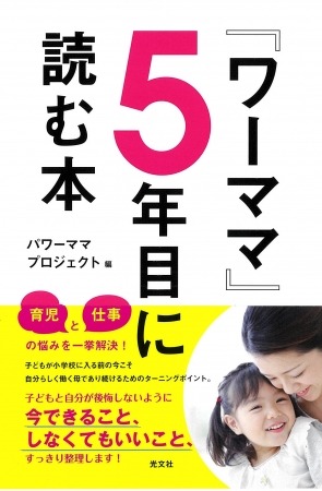 『「ワーママ」5年目に読む本』では、そんな 5 年目ワーママが漠然と抱えている不安をリアルなアンケー トをもとに項目化し、専門家や先輩ママに解決策を聞いてまとめています。子どもが 5 歳の今「できること、やらなくていいこと」をすっきり整理するための指南書となっています。