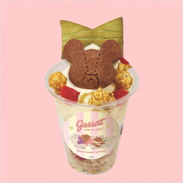 ギャレット ポップコーン ショップス(R)ららぽーとEXPOCITY店は、2017年に15周年を迎える「くまのがっこう」とコラボレーションし、ソフトクリームを使ったスペシャルメニューを発売します。スペシャルメニューは、バニラソフトクリームをベースにキャラメルクリスプ(TM)を散りばめ、チョコソースがかかったパフェ風のスイーツです。仕上げにかわいいジャッキーの顔型クッキーが加われば、思わず写真を撮りたくなること間違いなしです。