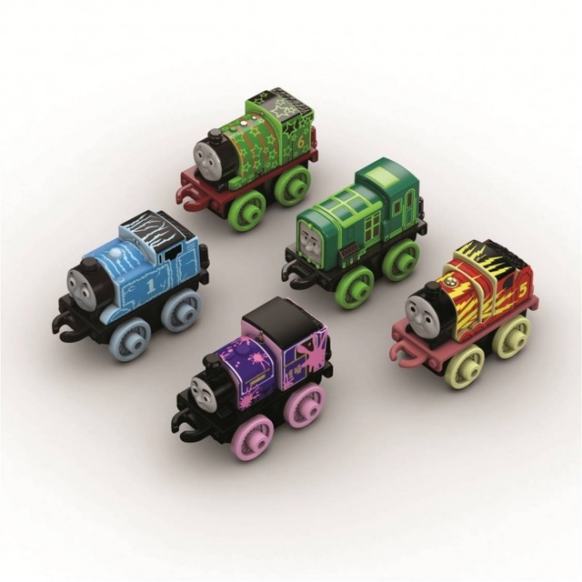 本商品は、2015年きかんしゃトーマス原作出版70周年を記念して発売開始された「ミニミニトーマス」シリーズより、新たに登場した暗闇で光るミニミニトーマス5個セットです。暗闇の中でぼんやりと光ります。