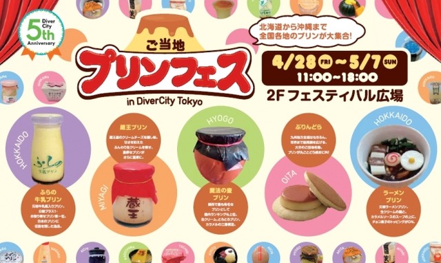 ダイバーシティ東京 プラザ(運営:三井不動産商業マネジメント株式会社 以下、ダイバーシティ東京)では、開業5周年を記念し“DiverCity 5th anniversary”を展開しています。北海道から沖縄まで全国各地のプリンが大集合する「ご当地プリンフェス」を開催する他、おトクで楽しいキャンペーンを続々と実施して参ります。