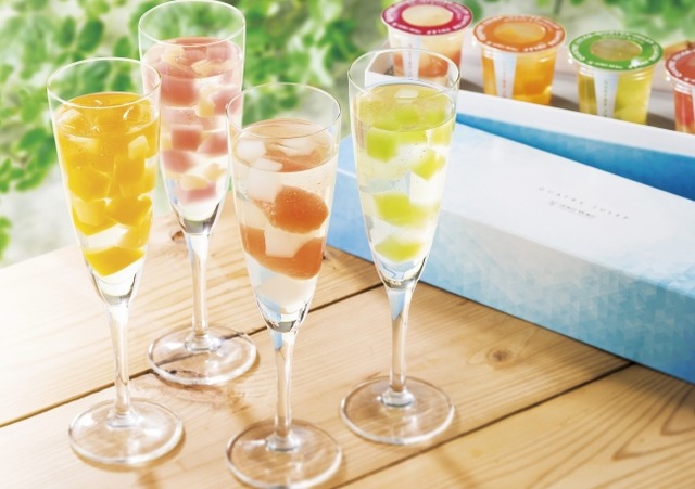 「キャトル ジュレップ」は食感と味を幾重にも重ねた、夏にふさわしい涼やかなサマーデザートです。 “つるりん”となめらかな食感の柑橘ジュレ、 “キラキラ”とした金箔入りの透明ジュレ、“ぷるるん”とした食感のフルーツ果汁のジュレ、“ジューシー”なカットした果肉を組み合わせました。ひと口ごとに、新しい味わいや食感に出会うことができます。お世話になった方へのご挨拶、お手土産はもちろん、ホームパーティにも最適です。