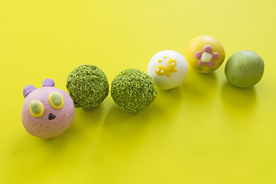 エリック・カール氏代表作のはらぺこあおむしがかわいいころころドーナツになりました。顔の部分はいちごのチョコレートでコーティングしています。抹茶のチョコレートやかぼちゃのチョコレートなど、全部で5種類の味がお楽しみいただけます。