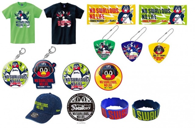 タワーレコード株式会社では、東京ヤクルトスワローズとのコラボレーションにより「NO SWALLOWS, NO LIFE.」コラボグッズを数量限定で4月28日(金)より発売します。販売は、タワーレコードでは、渋谷店など都内13店舗。スワローズではオフィシャルショップ4店、ならびにそれぞれのオンラインショップ、タワーレコード オンライン(http://tower.jp/)、東京ヤクルトスワローズ球団公式グッズ販売オフィシャルネットショップ(https://shop.yakult-swallows.co.jp/)での限定販売となります。