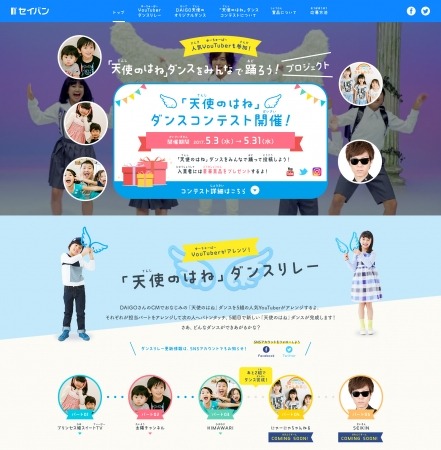 一般応募型の「天使のはね」ダンス動画投稿キャンペーンを開催。YouTuberがアレンジした「YouTuberスタイル」とCMでおなじみの「DAIGOさんによるオリジナルスタイル」の2部門からお選びいただけます。