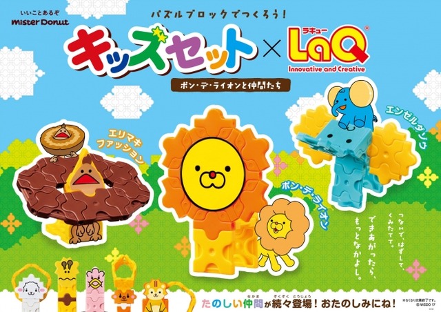 株式会社ダスキン(本社:大阪府吹田市、社長:山村 輝治)が運営するミスタードーナツは、4月26日(水)から、ドーナツ・ドリンク・グッズをセットにしたメニュー「キッズセット」の新グッズとして、ミスタードーナツのオリジナルキャラクターがつくれるパズルブロック『キッズセット×LaQ(ラキュー)』を追加します。