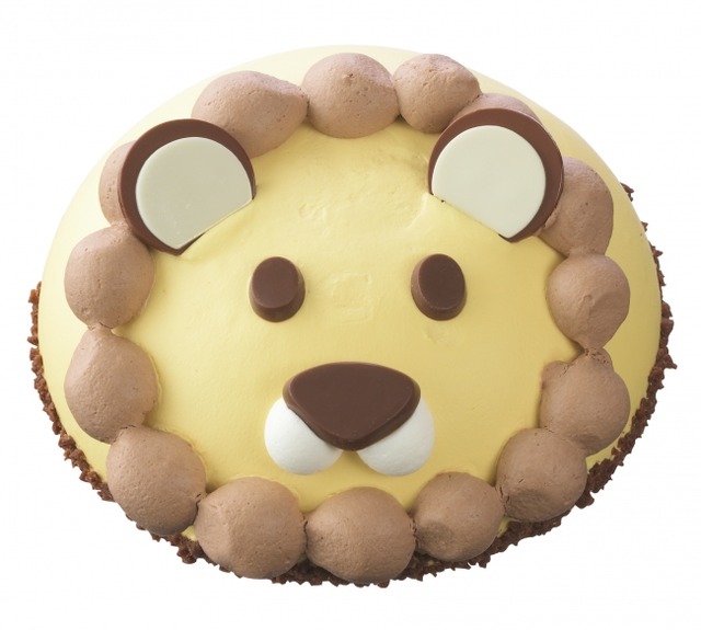 「アニマルデコ れおくん」は、百獣の王“ライオン”をモチーフにしたデコレーションケーキ。食感が楽しいチョコチップ入りチョコクリームとまろやかなバナナクリームが調和したドーム状のケーキを、チョコクリームのたてがみ&チョコプレートのお耳で仕上げました。大人からこどもまで、みんな大好きな黄金コンビ“チョコ&バナナ”のハーモニーと、愛らしいデザインが魅力の一品です。