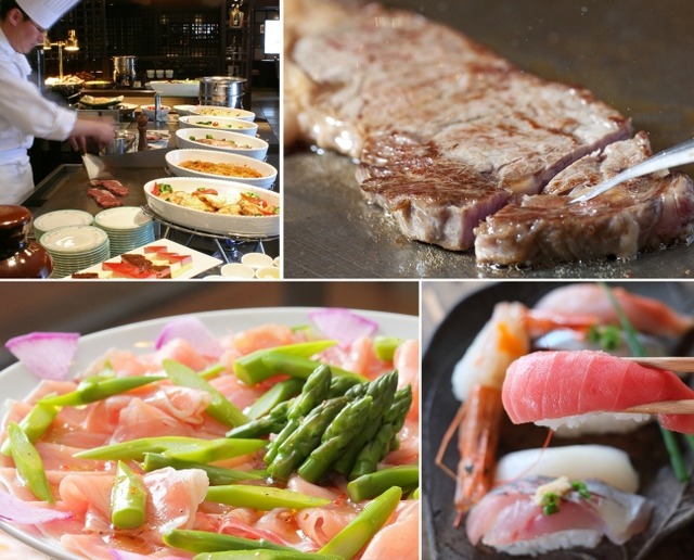 料理メニューに「寿司」「ハンバーグ」「赤魚のオーブン焼き」、デザートメニューに「実演クレープ」「ケーキと和菓子の盛り合わせ」「チョコレートファウンテン」など、大人からお子さままでお楽しみいただける種類豊富なメニューを取り揃えたブッフェを、期間限定で販売いたします。またスペシャルメニューとしてご用意する「アメリカ産牛ロース肉のステーキ ジャポネソース」「ローストポーク ジンジャーソース」は、お客さまの目の前でシェフが焼き上げて提供いたします。ご家族・ご友人とのお食事にぜひご利用ください。