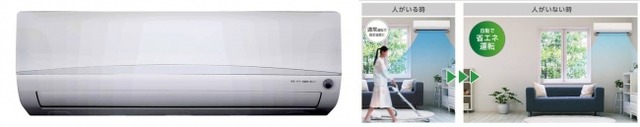 さらに機能面では、「人感センサー」を搭載しているため、人の動きを検知しない状態が続くと冷暖房機能を落とし消費電力を抑えて運転します。この「人感センサー」により、冷暖房能力を自動調整することで、30分間人の動きを検知しない状態では約26.6%、さらに2時間人の動きを 検知しない状態では約47.5%の電気代をカット※3します。