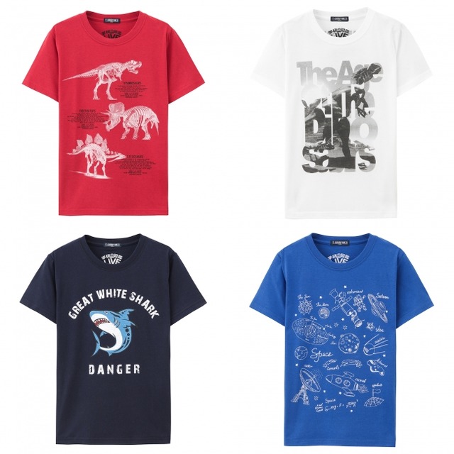 男の子のおしゃれを追求したクールなデザインの「学研の図鑑LIVE」Tシャツはただ今、全国のマックハウスで発売中。
