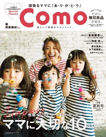 株式会社主婦の友社は、5月6日(土)に雑誌「Como」2017夏秋号を発売いたします。Comoは1990年に創刊以来、27年にわたり子育て黄金期であるママたちのライフスタイルを応援してきました。最終号となる今号も、Comoモデルとして活躍した人気美容家・神崎恵さんをはじめ、4児のママである東原亜希さん、木下優樹菜さん、藤本美貴さん、ママ漫画家など、輝くママたちを徹底インタビューしました。