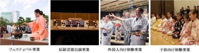 外国人旅行者等を対象に、都内の観光拠点などで日本の伝統文化・芸能を短時間で気軽に体験できるプログラム及び、体験と本格的な実演鑑賞を組み合わせたプログラムの2種のプログラムを展開します。なお、新たな拠点として、羽田空港国際線ターミナルと東京シティアイにおいても体験プログラムを開始します。