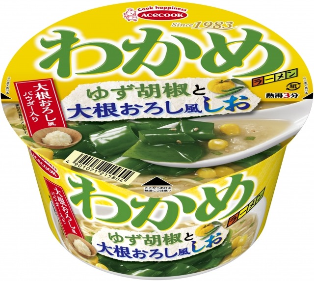 エースコック株式会社(本社:大阪府吹田市 社長:村岡寛)では、1983年の発売以来、“おいしさ、健康!!”をテーマに展開してきた「わかめラーメン」シリーズから、期間限定の「わかめラーメン ゆず胡椒と大根おろし風しお」を新発売させて頂く運びとなりましたので、ご案内申し上げます。