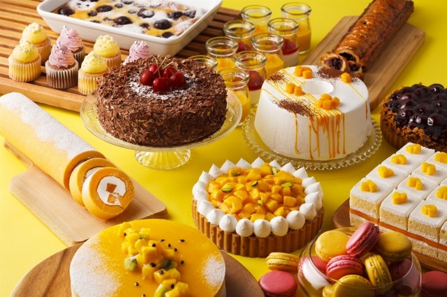 鮮やかなビタミンカラーが印象的なマンゴーは、タルトやショートケーキ、シフォンケーキにロールケーキ、マンゴープリンなど、マンゴー本来の芳醇さを味わえる王道スイーツをご用意いたします。甘酸っぱさが特長のチェリーは、温かなチェリーパイやフレッシュチェリーをそのまま飾ったパンナコッタ、チョコレートとの相性も抜群のフォレノワールやカップケーキに。週末限定で、マンゴーとチェリーのマカロンも登場します。