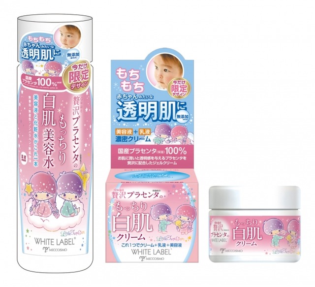 ホワイトラベルシリーズの中でも「人気プチプラコスメ」として雑誌や口コミサイトにもたくさんご紹介いただいている「美容水」と「クリーム」。その2品をサンリオの「キキ&ララ」とコラボレーションしたかわいいパッケージで発売いたします。