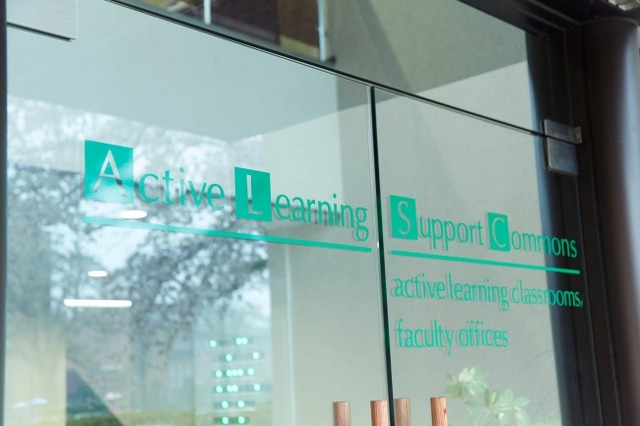 ALSK(アルスク)とは学生のアクティブラーニングの場の充実を図ることを目的に、自由な学びに活用できる柔軟性の高い空間として新設しました。グループワークの場としてや、プレゼンテーションの練習の場、また個別指導を受ける場として幅広く利用することが可能です。1階にはアクティブラーニング教室を設置し、教員の研究室もある同棟2階にはラウンジを設け、教員と学生が一体となって学べる空間を目指しています。また学修支援センターも同棟に併設されており、「英語フォローアップセミナー」など随時学生を支援するためのイベントを開催する。これらのセミナーは主に上級生や大学院生が個別で指導を行い、学生個人の要望に合わせてサポートします。