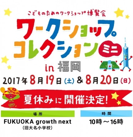 株式会社グッデイ(代表:柳瀬隆志 本社:福岡県筑紫郡那珂川町)は、『ワークショップコレクションミニ in 福岡2017』を開催いたします。昨年8月に福岡で初開催をし2日間で約1万8千人もの来場者で賑わったこどものためのワークショップ博覧会『ワークショップコレクションin福岡』、今年は新たな切り口で開催いたします。