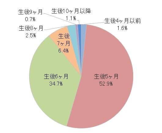 ■8割以上の人が、生後5~6ヶ月で離乳食を開始