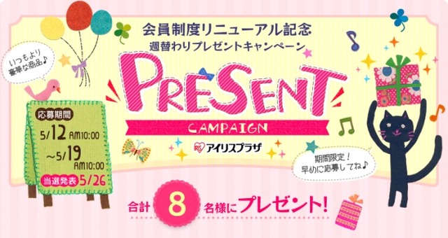 https://www.irisplaza.co.jp/Index.asp?KB=PRESENT2&adver=news&type=news&utm_content=PRESENT2&camp=170515news