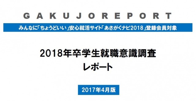 株式会社学情(本社:大阪市北区/東京都中央区、代表取締役社長:中井清和)は、2017年4月17日~4月28日の期間で、2018年卒学生向け就職情報サイト「あさがくナビ2018」登録会員を対象に、就職活動に関するWEBアンケートを実施しました。