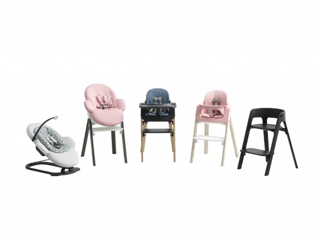「ストッケ ステップス」2017年の新色コレクションとして、「ステップス ベビーセット」に待望のブラックとピンクの2色が加わるほか、「ステップス チェアシート」、「ステップス ベビーセット トレイ」にもブラックが加わります。また、「ステップス バウンサー」には、ストッケのコレクションでも特に人気の高いグレークラウドが加わります。
