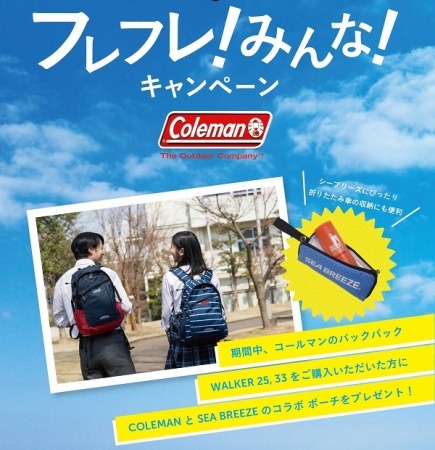 今回のキャンペーン対象商品は10年以上のロングセラーとして愛され続けている「WALKER(ウォーカー)」シリーズより、学生の通学バックとしても人気の高い『WALKER(ウォーカー)33』(全13色)と『WALKER(ウォーカー)25』(全12色)の2サイズのバックパックとティーンの定番アイテムとして知られている『SEA BREEZE (シーブリーズ)』との「学生応援キャンペーン」として実現した初のコラボ企画です。