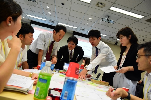この手法は、OPECなどの国際機関やシェル石油などのグローバル企業で長期戦略の立案、策定に使われています。当ワークショップには、NTTドコモやパナソニック、富士通などの「クエストエデュケーション」に関わる企業の社員と、主に関東近郊の中学、高校の先生が参加します。「クエストミーティング」では、「企業人×先生」でのオープンイノベーションの推進、当事者として長期的に社会を展望することで企業人、先生の双方にとっての気づきを生み出します。