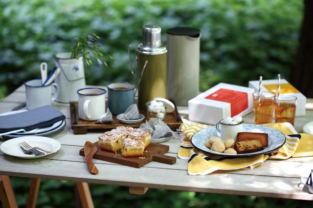 ピクニックや青空の下でのおやつ時間に、自由な場所で自由なときに楽しめるティータイムセットです。
