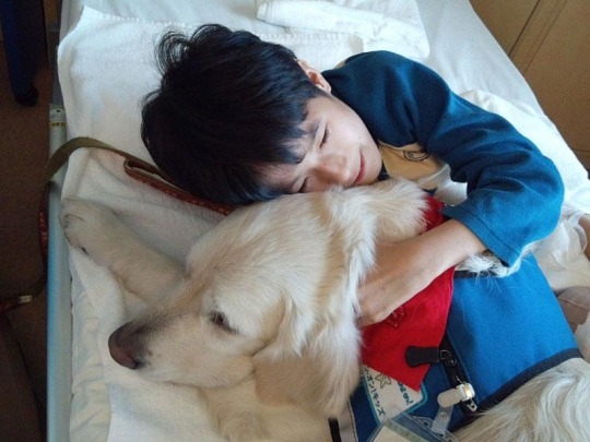 小児がんや重い病気の子ども達を支援する認定NPO法人シャイン・オン・キッズ(理事長キンバリー・フォーサイス http://sokids.org/ja/)が派遣する、この特別な訓練を受けた犬は、必ずハンドラーとペアで活動します。