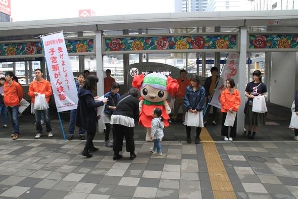 認定NPO法人子宮頸がんを考える市民の会と細胞検査士会では、全国の若い人たちが集まる場所で啓発をすることを共通認識として各地域で啓発活動を行い、子宮頸がん検診の後押しを行いました。道行く若い女性を中心に子宮頸がん検診の大切さを伝えニュースレターや啓発物を全国で7万部程度配布しました。この活動には厚生労働省が後援をし1,000名程度の細胞検査士を中心とした医療者が参加しています。