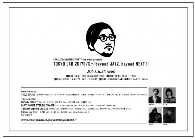 このたび、株式会社CANALIZE は、中核事業であるアパレル関連事業「canalize」に加え、新たにエンタテイメント事業の一環として、「TOKYO LAB* 2017 S/S~beyond JAZZ,beyond NEXT(2017 年6 月21 日@渋谷クラブクアトロ)」の主催/企画制作*を手掛ける運びとなりました。