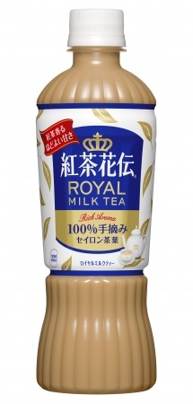 今回のリニューアルでは、100%国産牛乳使用の贅沢なミルクの味わいはそのままに、ミルクに負けない味わいを楽しめる、厳選された100%手摘みセイロン茶葉を新たに使用。「紅茶花伝 ロイヤルミルクティー」ならではのほどよい甘さが、茶葉の味わいと香りをいっそう引き立て、紅茶とミルクの絶妙なバランスをより楽しめるよう進化しました。パッケージもより高級感を感じるデザインに一新しました。