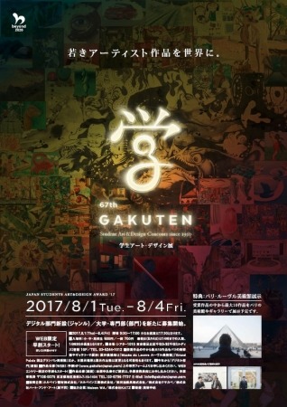 1950年に設立され60年以上の歴史を誇る、学生のためのアートコンペ「第67回学展」の概要が発表されました。これまでの長く親しまれてきた内容に加え、今年はさらなる魅力を拡充。学生たちに様々なかたちでデビューのきっかけを提供する、多様な展開となっています。