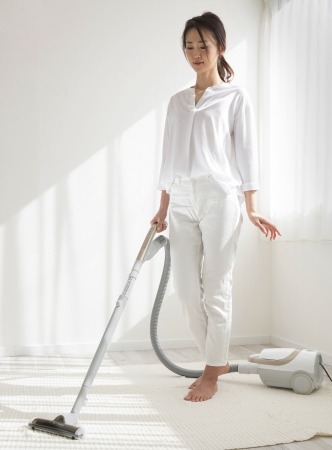 業界最軽量クラス※1となる1.8kgを実現したことにより、幅広い年齢層の方が無理なく使用でき日々の掃除の負担を軽減します。軽量なので片手で簡単に持ち運びができるため、階段や高いところも楽に掃除できます。また、コンパクトなため省スペースでの収納が可能です。