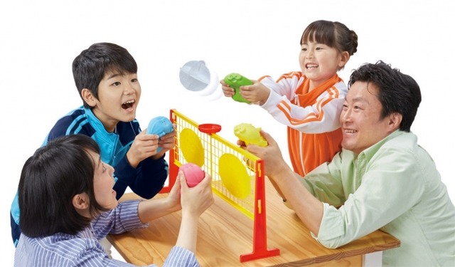 「クレヨンしんちゃん 対決!ぶーぶーケツミントン」は、親世代、子世代にわたって親しまれている国民的アニメ「クレヨンしんちゃん」に登場するキャラクターをかたどったソフビ人形を押すことで噴出する風圧を活かし、羽根を飛ばして遊べるファミリー玩具です。卓上にネットを設置し、家族みんなでバドミントンのようなラリーを楽しむことができます。またサッカーのリフティングの様に、その場で羽根を飛ばし続け、誰が最後まで羽根を落とさずにいられるかを競ったりと、他にも色々な遊び方をして楽しめます。