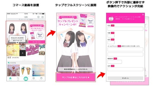マホアプリ内で動画掲載から購買/サンプル請求までをシームレスに行える