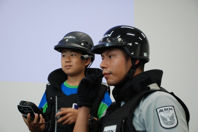 企業と連携し社会貢献活動を行うFIFとALSOKが共同で企画、運営する本プログラムは、今年で5回目となります。今回は近未来の大規模イベントに向けて「人とITが融合した未来のセキュリティ」をテーマに、警備ロボットや飛行ロボット、ウェアラブルデバイスや画像解析技術など最新のテクノロジーを活用した未来の警備を体験するほか、ガードマンの心得や基本動作を学習します。また救急救命講習では、初めての試みとして、心臓マッサージの技量を測定・可視化するシステムを用いた実習を行うなど、社会の安全安心を守る様々な取り組みを学びます。