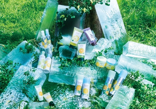 清涼感いっぱいのみずみずしいエネルギーがあふれるシトラスソルベと早摘み夏みかんの香りで、ひんやりリフレッシュできる冷感コスメ&冷感ボディケアをラインナップ。